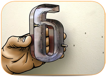 Rosqueie os pinos na parte de tráz da letra como indicado na ilustração.